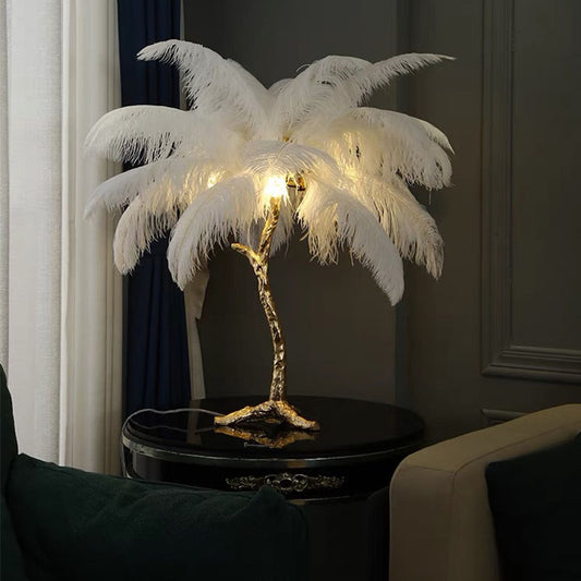 Creative Design Nordic Luxury Ostrich Resin Feather Lamp Tree Light Table Lamp Feather For Living Room Bedroom